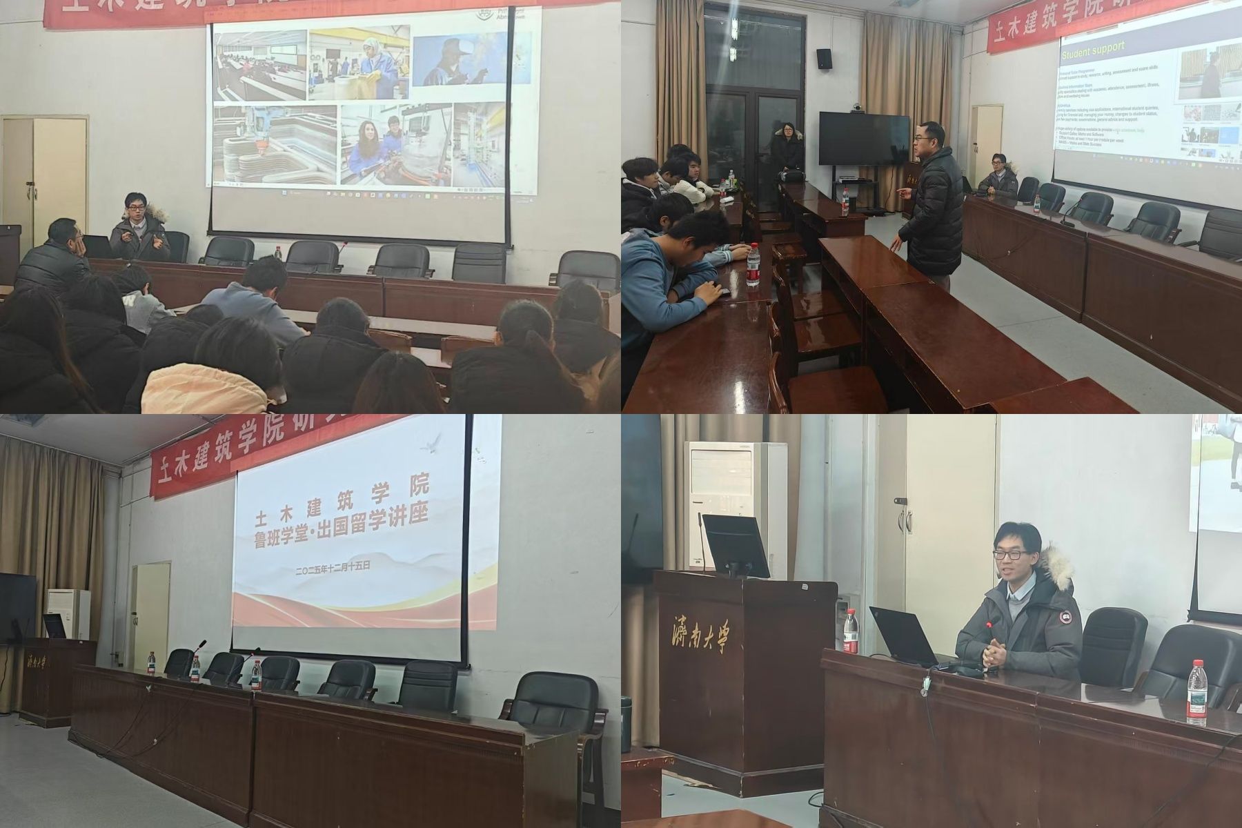 为深入贯彻落实教育部等八部门《关于加快和扩大新时代教育对外开放的意见》“提升国际化人才培养质量”部署要求,深化“鲁班学堂”育人实效,帮助学生科学规划出国留学路径,我院于12月15日在第八教学楼举办出国留学主题讲座。本次讲座邀请英国斯旺西大学侯越教授作报告,学院有出国留学意愿的学生参加。讲座由院长谢群主持。