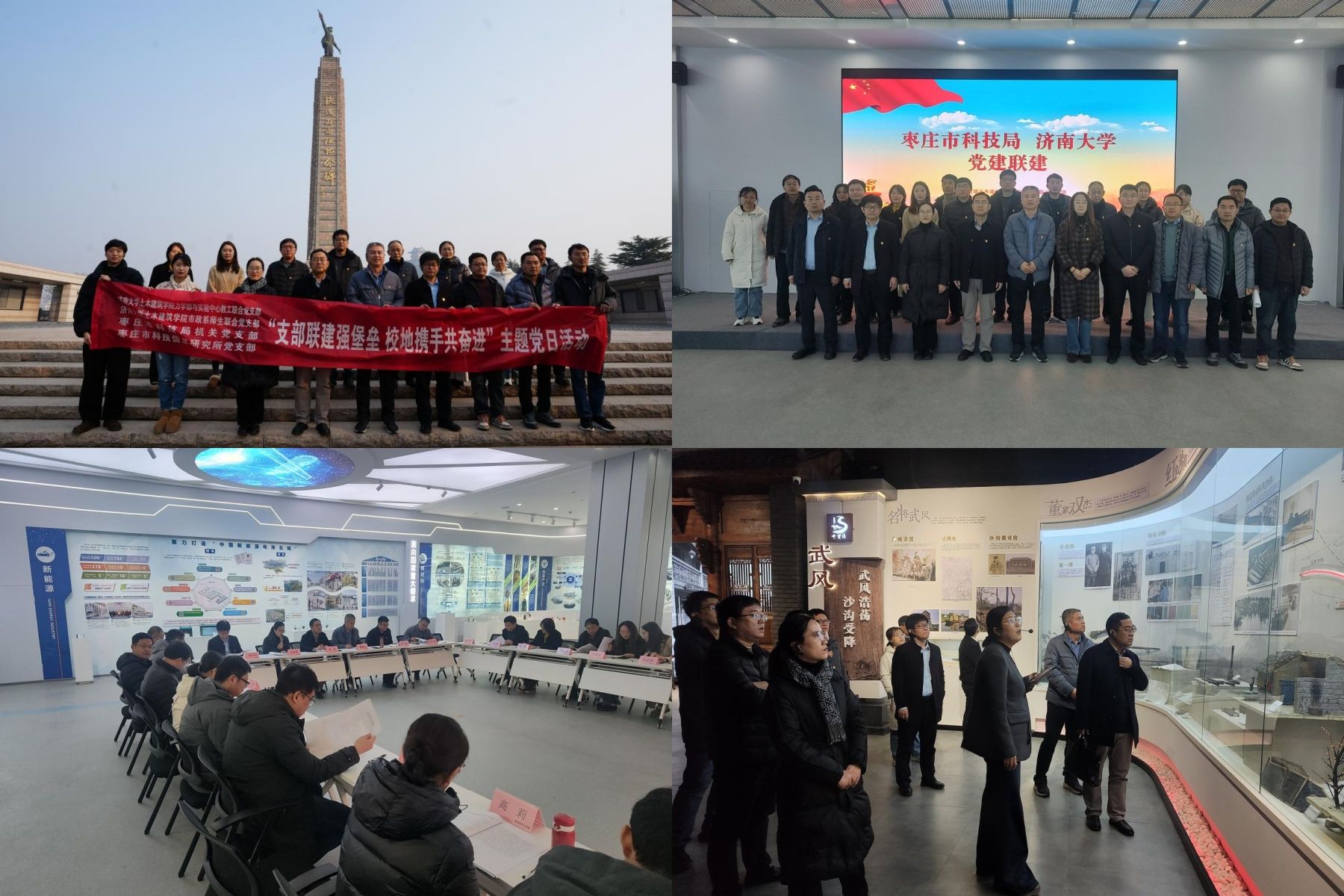 为学习贯彻党的二十届四中全会精神深化校地党建引领与科技创新协同发展,12 月 17 日我院与枣庄市科技局开展党建联建活动。学院领导班子、市政系师生联合党支部、力学部与实验中心联合党支部教工党员参加活动。