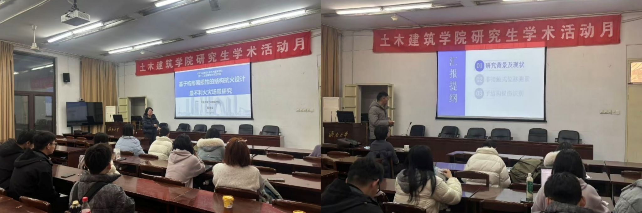 在本次学术报告中,陈文文博士主题报告为《基于构形易损性的结构抗火设计最不利火灾场景研究》,针对传统抗火设计常采用罗列火灾场景的方式分析结构倒塌风险,存在场景冗余、分析效率偏低的问题,引入构形易损性理论,基于图论方法精准识别结构关键构件与薄弱区域,据此定义两类核心火灾场景:其一为单一构件失效时,选取对应最小破坏模式的构件作为受火对象;其二为连续失效时,选取易损性指标最大的构件组合作为受火对象。并将将该方法应用于6层4跨钢框架结构分析。针对轻钢龙骨复合剪力墙结构,构建简化杆系计算模型,其分析得到的破坏模式与真实火灾试验结果完全吻合,并确定外墙或内墙梁为该类结构的最不利受火部位。该方法大幅提升了性能化抗火设计的分析效率与精准性,为结构抗火设计优化提供了全新的技术路径。