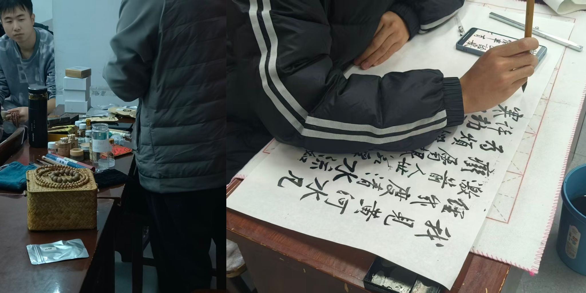 2025年12月14日,我院下设的社团——金石篆刻书画社团第三次社团活动在第八教学楼223教室开幕。这场活动不仅呈现了一群学生为了爱好齐聚一堂的活力,与大家分享自己爱好的感染力,更展现了不同专业,不同国籍的同学为了同一爱好而相遇的可贵友情。
