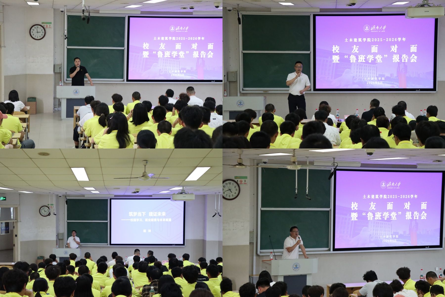 此次报告会不仅是学院“鲁班学堂”品牌活动的重要组成,更是2025级新生入学教育的关键环节。活动中,新生不仅系统了解了土木建筑行业的发展前景、清晰梳理了专业学习思路,更借由校友的亲身经历与榜样力量,有效激发了自身的学习热情与专业归属感。未来,学院将持续推进优秀校友返校分享机制常态化,进一步搭建校友与在校生间的深度交流桥梁,为学子成长为土木建筑领域高素质专业人才提供有力支撑。